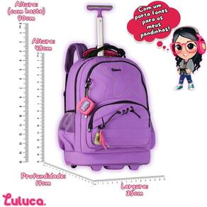Mochila Luluca De Rodinhas Escolar Mala Viagem Meninas Lilás