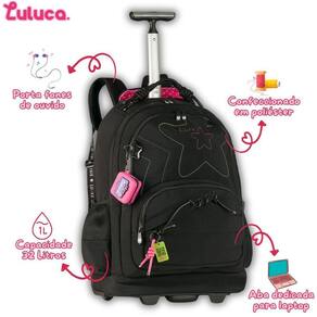 Mochila Luluca De Rodinhas Escolar Mala Viagem Meninas Preta