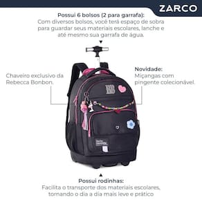 Mochila mala escolar de rodinhas rebecca bonbon grande com chaveiro e pingentes 6 bolsos Cor: preto Aclamada entre as fashionistas, rebecca bonbon, retorna com as principais tendências para a coleção 2025. Novas linhas com aplicações variadas e acessórios diferenciados reafirmam que a combinação entre moda e volta às aulas é sucesso garantido. A mochila de rodinha é a escolha perfeita para quem precisa carregar muitos pertences para a escola, faculdade, viagens, clube etc. Confeccionadas em crinkle com matelassê, alças com cadarço logado acetinado e puxador com cadarço. Mochilas acompanham chaveiro de pompom e borracha com rebecca bonbon 3d. Possui compartimento para guardar alças para melhor desempenho no modo mala e compartimento para notebook. alças de costas acolchoadas e ajustáveis. Amplo compartimento principal, costura reforçada para melhor duração e proteção. Características que vão te encantar: . Mochila de rodinhas: facilita o transporte dos materiais escolares, tornando o dia a dia mais leve e prático. Ideal para longas caminhadas ou para quem precisa carregar muitos livros e cadernos; . Fabricado em crinkle: o material crinkle com matelassê proporciona um toque macio e elegante, além de ser resistente e fácil de limpar; . Detalhes encantadores e chaveiros: apliques personalizados e chaveiros exclusivos deixam o kit ainda mais charmoso e divertido, tornando-o único e irresistível; . Mochila com 6 bolsos 2 para garrafa : organização e praticidade definem essa mochila com diversos bolsos, você terá espaço de sobra para guardar seus materiais escolares, lanche e até mesmo sua garrafa de água. Além disso, possui um compartimento especial para guardar as alças quando quiser usar a mochila como mala de mão; . Compartimento para alças: permite que você utilize sua mochila com ou sem as alças traseiras. Especificações da mochila: . Marca: rebecca bonbon; . Modelo: rb24592 19; . Dimensões: altura - 48cm; largura - 35cm; profundidade - 19cm; . Material: crinkle com matelassê; . Quantidade de bolsos: 6 bolsos; . Possui rodinhas: sim. . Alça retrátil: sim. Cuidados: . Guarde em local seco e arejado; . Para a limpeza do produto, utilize apenas pano úmido com sabão neutro; . Não imergir na água; . Não utilizar componentes químicos, solventes ou alvejantes; . Evitar colocar excesso de peso; . Proteja de objetos cortantes e/ou pontiagudos. Atenção: os produtos podem sofrer alterações de cores devido ao monitor. Vantagens de comprar na zarco br: . Envios em até 24 horas úteis: com a zarco br, seu pedido é processado rapidamente e enviado em até 24 horas úteis, garantindo agilidade e eficiência na entrega; . Produtos novos: cada item disponível é totalmente novo, assegurando que você receba um produto em perfeitas condições, sem uso prévio; . Produtos com : com a zarco br, seus produtos contam com oficial, oferecendo segurança e tranquilidade na sua compra.