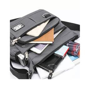 Bolsa masculina transversal de ombro, de grande capacidade, durável, com vários bolsos e alça ajustável. Nas cores preto e cinza, estilo casual e/ou de negócios, perfeita para quem busca praticidade e estilo no dia a dia. Possui quatro compartimentos espaçosos, oferece amplo espaço para armazenar todos os seus itens essenciais. A bolsa conta ainda com dois bolsos laterais, ideais para guardar pequenos objetos que precisam estar sempre à mão.A alça ajustável proporciona conforto e versatilidade, permitindo que você ajuste a bolsa conforme a sua necessidade.Detalhes do produto: Multi Compartimento e bolsos lateraisMaterial: Nylon Alça: AjustávelTamanho: 24 cm (largura) x 19 cm (altura) x 9 cm (profundidade) Cuidados: lavar à mão, não lavar a seco.