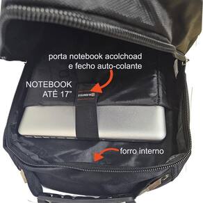 Mochila note15 cabo de aço bf41 + capa - compartimento principal com zíper duplo reforçado - compartimento interno acolchoado e fecho - garantindo a proteção extra do seu laptop - compartimento central com zºiper - compartimento frontal com divisorias internas organizadoras de canetas, celular, chave, agenda etc - bolso frontal com ziper - bolsos laterais em tela e elastico - cabo de aço - mais forte - sistema de fluxo de ar nas costas - costas acolchoadas - alças acolchoadas e ajustaveis