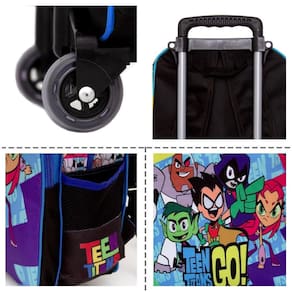 Kit Mochila Escolar Infantil Jovens Titãs Rodinhas, acompanha lancheira e estojo. Possui alça de mão reforçada. Agora você pode levar sua mochila no seu dia a dia ou acompanhar você na escola. Sua abertura maior se dá por zíper com puxador. Na parte de dentro possui amplo espaço para a guardar diversos materiais como cadernos, livros e estojos. Na parte da frente, possui bolso com zíper para a guardar pertences de menor tamanho e bolsos laterais.