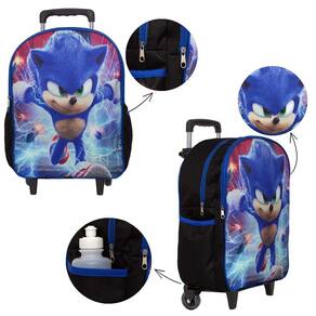 Kit Mochila Escolar Infantil Sonic The Hedgehog Rodinhas, acompanha lancheira e estojo. Possui alça de mão reforçada. Agora você pode levar sua mochila no seu dia a dia ou acompanhar você na escola. Sua abertura maior se dá por zíper com puxador. Na parte de dentro possui amplo espaço para a guardar diversos materiais como cadernos, livros e estojos. Na parte da frente, possui bolso com zíper para a guardar pertences de menor tamanho e bolsos laterais.