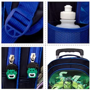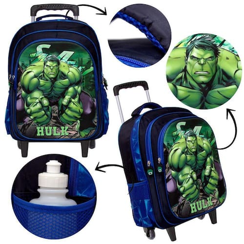 Mochila Escolar Infantil Incrível Hulk 3D Rodinhas possui alça de mão reforçada. Agora você pode levar sua mochila no seu dia a dia ou acompanhar você na escola. Sua abertura maior se dá por zíper com puxador. Na parte de dentro possui amplo espaço para a guardar diversos materiais como cadernos, livros e estojos. Na parte da frente, possui bolso com zíper para a guardar pertences de menor tamanho e bolsos laterais.Características:Alça superiorEstampa no bolso frontalZíper metálicoBolso LateralMedidas Mochila:Altura: 41cmLargura: 15cmComprimento: 32cmDúvidas Frequentes:1. Ela possui alça ajustávelR. Sim, ela possui alça ajustável para melhor conforto.2. Ela possui estampa frontalR. Sim, ela possui estampa frontal3. Ela possui quantas divisõesR. Ela possui 03 divisões para guardar suas coisas.4. Qual o material da mochilaR. Ela é feita em poliéster e plástico.Tags: Mochila, Escola, Escolar, Vingadores, Hulk, Incrivel Hulk, Infantil, Rodinhas, Passeio, Estojo, Lancheira, Bolsa, Menino, Juvenil, Reforçada, Desenho. Marca: Toys 2U