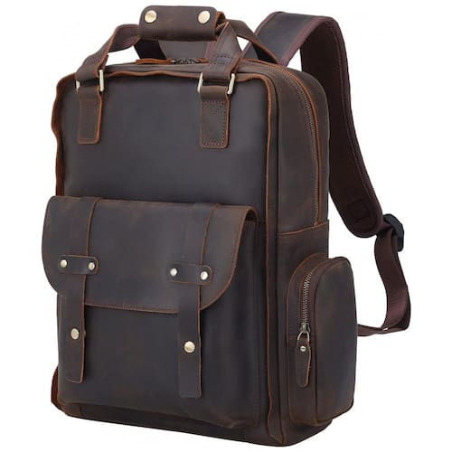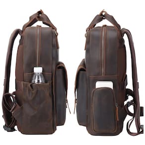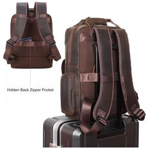 Material superior Feito de couro grosso de flor integral e zíperes de metal YKK duráveis, a parte traseira e as alças da mochila vêm com design acolchoado protetor, respirável e confortável.