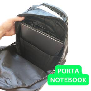 Mochila Escolar Universitária Sport Resistente, Com Saída Para Cabo USB, Fone de Ouvido e Bolso Para Notebook. Própria para Estudante, Motoboy, Motoqueiro, Entregador, Viajante, Aventureiro e outros. Ideal para Faculdade, Escola, Trabalho, Viagens, Passeios trilhas e outros. ------- Características ------- - Tecido em Poliéster Impermeável- Compartimento para Notebook 15 a 16 polegadas- Saída para fone de ouvido e USB- Alça Reforçada com Cabo de aço- Pegador Emborrachado- 5 Compartimentos- 2 bolsos laterais para garrafa de água- Costura Resistente ------- Medidas, Peso e Capacidade ------- - Altura 49 cm- Largura 35 cm- Profundidade 33 cm- Capacidade 35 Litros- Peso 0,600g ------- Importante ------- 1- A garrafa não acompanha o produto, é meramente ilustrativa;2- O Notebook, o smartphone e fone de ouvido não acompanham o produto, é meramente ilustrativo;3- O emblema da mochila e o formato do zíper podem variar, dependendo de nosso estoque;4- As características principais como Cor (Preta), 5 compartimentos com zíper, 2 bolsos laterais, Cabo de aço, compartimento interno para Notebook, saída para fone de ouvido e Usb, cabo P2 e Cabo USB sempre serão iguais.