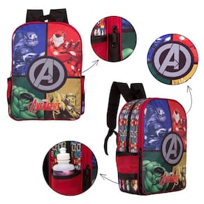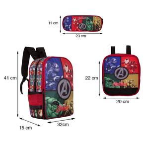 Kit Mochila Escolar Infantil Vingadores, acompanha lancheira e estojo. Possui alça de mão reforçada. Agora você pode levar sua mochila no seu dia a dia ou acompanhar você na escola. Sua abertura maior se dá por zíper com puxador. Na parte de dentro possui amplo espaço para a guardar diversos materiais como cadernos, livros e estojos. Na parte da frente, possui bolso com zíper para a guardar pertences de menor tamanho e bolsos laterais.Características:- Alça superior- Estampa no bolso frontal- Zíper metálico- Bolso LateralMedidas Lancheira:- Altura: 22cm- Largura: 24cmMedidas Estojo:- Altura: 11cm- Comprimento: 23cmMedidas Mochila:- Altura: 41cm- Largura: 15cm- Comprimento: 32cmDúvidas Frequentes:1. Ela possui alça ajustávelR. Sim, ela possui alça ajustável para melhor conforto.2. Ela possui estampa frontalR. Sim, ela possui estampa frontal3. Ela possui quantas divisõesR. Ela possui 02 divisões para guardar suas coisas.4. Qual o material da mochilaR. Ela é feita em poliéster e plástico.Tags: Mochila, Escola, Escolar, Vingadores, Avengers, Infantil, Costas, Passeio, Estojo, Lancheira, Bolsa, Menino, juvenil, Reforçada, Desenho. Marca: Toys 2U