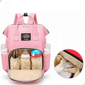 Mochila Maternidade Cor Rosa Bebê Mamadeira Reforçada
