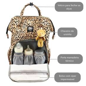 CARACTERÍSTICAS - Marca: BH STORE; - Modelo: BH Travel; - Tecido impermeável; - Produto de alta qualidade, lavável; - Pode ser usada como mochila e bolsa; - Alças de Costas reguláveis, reforçadas e confortáveis; - Correias para prender no carrinho de bebê; - Bolsa principal: abertura com 2 zíperes; - Amplo espaço interno; - 06 Bolsos internos; - 06 Bolsos externos; - Compartimentos térmicos; - Capacidade: 20 a 30 Litros.