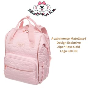 Mochila Maternidade Lilica Ripilica Little Shine Matelassê Rose Gold Bolsos Laterais Internos Externos Confortável Resistente