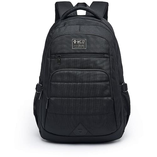 Mochila MCD com compartimento grande principal, que conta com compartimento para notebook de até 15". Alça de mão acolchoada e logo frontal emborrachado. Conta com dois bolsos na parte frontal com fechamento em zíper, além de bolsos laterais com elástico. Alça de costas reguláveis e etiquetas personalizadas.