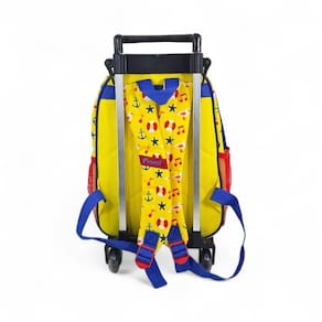 Medidas da mochila: 33 cm altura x 25 cm largura x 13 cm comprimentoCapacidade 10 L, 13polegadas - comporta cadernos brochura grandeSuporte com rodinhas de silicone e haste de alumínio Haste esticada com altura máxima de 70 cm.