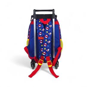 Medidas da mochila: 33 cm altura x 25 cm largura x 13 cm comprimentoCapacidade 10 L, 13polegadas - comporta cadernos brochura grandeSuporte com rodinhas de silicone e haste de alumínio Haste esticada com altura máxima de 70 cm.
