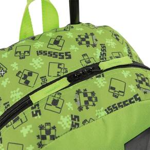 Principais Características: - Design exclusivo com o personagem Creeper no painel frontal - Detalhes quadriculados que remetem ao universo do game Minecraft - Bolso frontal com zíper reforçado e puxador em cadarço - Amplo compartimento central para organizar o material escolar - Versão com carrinho, com duas rodinhas e pés de apoio - Altura: 49 cm - Largura: 32 cm - Profundidade: 19 cm - Peso: 1 kg - Capacidade Total: 19 L