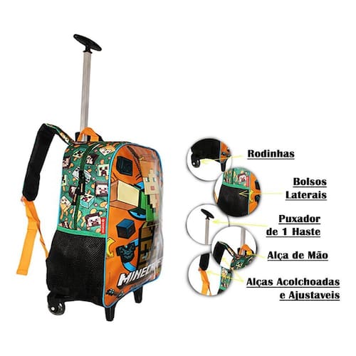 Mochila Grande de Rodinha Minecraft M Funtage OriginalCaracterísticas:- Alça: De Mão- Ocasião: Dia a Dia, Escolar- Tamanho: Grande- Material: PoliésterDimensões:- Altura: 50 cm- Largura: 30 cm- Profundidade: 16 cm- Peso: 0,800 kg- Capacidade Total: 19 LitrosAlça de Mão - Com a alça de mão, não tem mistério. Pegou, levouBolso lateral - Com o bolso lateral você pode colocar sua squeeze ou objetosIdentificador - Para nunca mais perder sua mala, é só preencher seus dados no identificadorGarantia de 3 meses contra problema de fabricação. Marca: Não Informado Ean: 7908827202818