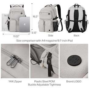 mixi Mochila de viagem para laptop, leve, masculina, feminina, bolsa para computador de 39.6 cm, com bolsos multifuncionais, 43 cm, Bege, Tendência - ?Vários compartimentos?Esta mochila possui um compartimento principal com zíper, três bolsos frontais com zíper e dois bolsos laterais. O compartimento principal oferece um compartimento acolchoado dedicado para laptop de 15,6 polegadas, dois bolsos laterais são bons para guardar garrafas de água e guarda-chuvas. Acesso bem organizado e conveniente aos seus itens essenciais. - ?Durável?A mochila é feita com material resistente a rasgos e água de alta qualidade, oferece resistência extra e desempenho duradouro com o peso mais leve possível. O zíper YKK é suave e durável para um tempo de uso mais longo. - ?Respirável e confortável?Alças de ombro em forma de S de malha respirável confortáveis ajudam a aliviar o desconforto do seu ombro para uso prolongado. A alça superior é perfeita para quando você quiser carregar sua bolsa e dar uma pausa nos ombros. - ?Dimensão geral? As dimensões externas da mochila são 28 x 13 x 41 cm. Uma alça de bagagem na parte de trás que pode prender a alça telescópica da mala, para que você possa liberar seus ombros e mãos durante a viagem. - ?Mochila multiusos?Esta mochila elegante pode ser uma ótima companhia para homens, mulheres, viagens, negócios, uso diário e atividades ao ar livre. 3 anos de garantia. A satisfação dos clientes é a nossa maior busca.