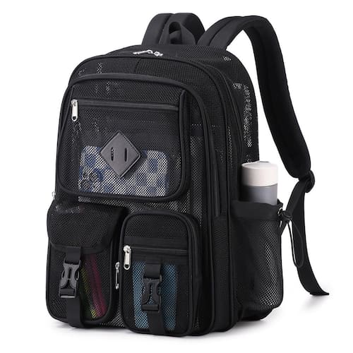 Mochila de malha - Respirável: a mochila de malha grande é feita de malha de poliéster respirável, é bastante adequada para transportar para a praia, você nunca pode se preocupar com areias caindo em sua mochila ou seus trajes de banho molhados ficarem cheiros. - ? Muitos quartos: mochila resistente com vários compartimentos e bolsos, que é suficiente para guardar material escolar, material de trabalho, itens de sopro, itens essenciais de praia ou viagens, caminhadas, acampamento, compras, itens hospitalares. - ?LEVE E CONFORTÁVEL: A mochila clássica de malha transparente é projetada com alças de ombro respiráveis ergonômicas e respiráveis, espessas e largas, se encaixa perfeitamente nos ombros, o que libera a pressão dos seus ombros quando você carregar cargas mais pesadas. - 👍 Verificação de segurança: a mochila de malha é a escolha ideal, atende aos requisitos de segurança das escolas e é muito mais legal do que uma mochila comum, também passa pelos pontos de verificação de segurança rapidamente. Mochila perfeita, recomendada para crianças, adolescentes, mulheres, homens. - Dimensões: 33 x 18 x 44 cm (C x L x A), peso: 0,7 kg. O recurso leve reduzirá o peso da embalagem e facilitará o transporte.