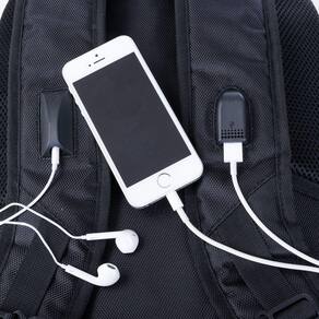 Para aqueles que apreciam tecnologia, a mochila é equipada com uma saída para fones de ouvido, permitindo que você curta suas músicas preferidas a caminho do trabalho ou da aula. Além disso, a entrada USB integrada facilita o carregamento de dispositivos móveis, mantendo você conectado sem a necessidade de cabos extras e desorganizados.
