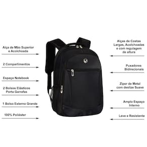 Mochila Preta Masculina Feminina Executiva Notebook Laptop Tablet com 2 Divisões Nylon Poliester Essa mochila é indicada para você que procura estilo e praticidade no dia a dia, com ela você poderá carregar seu notebook, além dos seus indispensáveis pertences, tudo isso com um bom espaço interno e 1 bolso externo grande, além disso a mochila possui um design ergonômico que proporciona mais estabilidade e conforto para suas costas, sendo facilmente utilizada em caminhadas mais longas, no trabalho, ir para academia, lazer etc.BENEFÍCIOS1. Atendimento pós venda para suprir todas as suas necessidades desde o momento da compra até a entrega do produto.2. Produto em Nylon com resistência e durabilidade com ótimo custo x benefício.3. Produto com design moderno e atual.4. Garantia de Fábrica contra defeitos de fabricação.CARACTERÍSTICAS- Fabricada em Nylon 100% Poliéster de alta qualidade- Compartimento interno para Notebook- 2 Compartimentos Externos fechados com zíper- 1 Bolso Externo Grande fechado com zíper- Peso aproximado: 600 gramas- Alça de mão acolchoada para maior conforto ao carregar peso- Compartimento Principal com zíper duplo bidirecional com ótimo deslize- Alças para as costas acolchoada, regulável, resistente e confortável- 2 Bolsos laterais com telas, ideal para carregar sua garrafa de água (squeeze) e pequenos objetos no dia a dia- Puxadores de zíper em metal- Forro interno em nylon liso na cor preta- Logo Yepp em metal personalizadoMEDIDAS- Externa aprox. Altura: 45cm X Largura: 30cm X Profundidade: 18,5cm- Dimensões aprox. do compartimento Notebook: Altura: 40cm x Largura: 27cmGARANTIA E QUALIDADEPrezamos a venda de produtos de alta qualidade adquiridos de grandes fábricas e importadores para proporcionar um ótima experiência de compra para nossos clientes. Aceitamos devoluções em até 30 dias corridos a contar do recebimento do produto, caso apresente problemas de fabricação! Não cobrimos mau uso. DICAS DE CONSERVAÇÃO E CUIDADOS COM O PRODUTO- Evite colocar excesso de volume para não forçar os zíperes e costuras- Proteja os objetos cortantes e/ou pontiagúdos, evitando contato direto com o produto- Não aplique abrasivos, solventes ou agentes químicos- Nunca utilize somente uma alça para carregá-la- Secar a Sombra