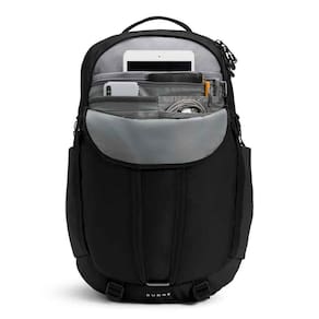 Mochila Notebook The North Face Surge Unissex - Preta A Surge é a mochila que vai te acompanhar em todos os seus compromissos diários. Renovada e com novas características modernas, conta com acabamento resistente à água non-PFC DWR não fluorado, sendo perfeita para te acompanhar na escola ou na faculdade, no trabalho e até mesmo na academia. Com design moderno, essa mochila para o dia-a-dia é muito versátil e possui compartimentos específicos para guardar livros, equipamentos eletrônicos e notebook. Feita com sistema de suspensão FlexVent tm , essa mochila moderna apresenta alças acolchoadas e confortáveis, e costeira arredondada para proporcionar máximo conforto. Dados Técnicos Composição: 210D nylon ripstop reciclado com acabamento resistente à água não fluorado non-PFC DWR Peso médio: 1260 g Dimensões: 30.5 cm x 17.8 cm x 50.8 cm Volume: 31 litros Compartimento para laptop: 38.1 cm x 29.2 cm Acabamento resistente à água não fluorado non-PFC DWR para maior proteção O sistema de suspensão FlexVent tm , certificado pela Associação Americana de Quiropraxia, tem alças articuladas para os ombros, costeira arredondada, costuras confortáveis e tecido de toque macio Design permite que a mochila fique em pé Exclusivo compartimento para um laptop oferece proteção Amplo compartimento principal para livros e fichários Compartimento frontal com organizador interno tem bolso com zíper e compartimento para tablet acolchoado Bolso externo forrado em fleece para óculos de sol, telefone ou chaves Dois bolsos externos duráveis para garrafa de água podem dobrar de tamanho como bolsos multiuso com rápido acesso para smartphone em um dos lados Dois bolsos externos em J com zíper, um deles forrado em fleece Compressão na parte inferior Tiras revestidas costuradas daisy chains para pontos de amarração adicionais 360 graus de refletividade Alça superior acolchoada e confortável Estabilizador peitoral tem fivela com apito Cinto removível Marca: Não Informado