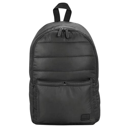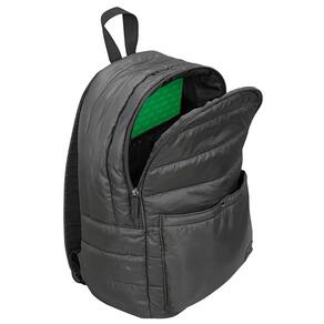 Padding backpack com bolso frontal e fechamento com botão de pressão, que facilita o acesso aos seus pertences. Logo e puxadores emborrachados adicionam um toque casual.