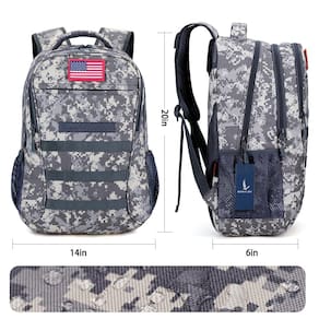 Mochilas para meninos de 8 a 12 anos para o ensino fundamental, bolsas táticas de 40 L para adolescentes, mochila escolar com bandeira americana de camuflagem com porta USB Tamanho aproximado da mochila infantil Dimensões de 50 cm x 35 cm x 15 cm e capacidade de tamanho adequado de 40 L. Dimensões de 50 cm x 35 cm x 15 cm e capacidade de 30 L de tamanho adequado. Cenário de aplicação Bons presentes para mulheres e homens! Perfeita para usar ao caminhar, viajar, acampar e outras atividades ao ar livre, uma ótima mochila de ensino médio para meninos adolescentes. Carregamento por Mochilas para meninos de 8 a 10 anos com porta de carregamento USB oferecem acesso rápido para carregar seu telefone, mãos livres, muito convenientes e elegantes. Design de cinto reforçado. Existem duas linhas triangulares em ambas as cintas costuradas no painel traseiro. Mais forte, pode suportar peso pesado e não fratura, solta fios. Zíperes Os zíperes são um componente muito importante de uma mochila escolar camuflada. Esta mochila digital camuflada adota zíperes resistentes e resistentes, fácil de deslizar e funciona sem problemas. Puxadores de zíper com cordão são convenientes de usar e garantem uso duradouro Alças ajustáveis. A alça flexível, com fivela forte e confiável, ajusta-se fácil e rapidamente ao comprimento que você precisar e permanecerá no comprimento escolhido sem soltar. Grande compartimento e bolso: Compartimento separado para laptop: serve para laptops com menos de 15,6 polegadas e Mac Compartimento principal: roupas finas, fones de ouvido, livros, revista, câmera, etc. Compartimento frontal: para iPhone, caneta, chaves, carteira, bolsa, óculos e outros itens pequenos Suporte para garrafa de água: bolsos de malha elástica durável, em ambos os lados, serve para garrafa de água, guarda-chuva compacto pequeno e outros itens Bolso traseiro pequeno: celular, carteira, fone de ouvido Conteúdo da embalagem: 1 mochila para meninos. 1 cabo de carregamento em mochila camuflada. Observação: a descrição da faixa etária sugerida é "acima de 10 anos" - Mochila camuflada com porta de carregamento USB: há portas duplas no cinto: a porta USB com cabo de carregamento integrado oferece uma maneira mais conveniente e fácil de carregar seu telefone. Um conector de fone de ouvido lado a lado com porta USB oferece a melhor maneira de ouvir sua música. Assim, pode liberar suas mãos, fácil em viagens, eventos ao ar livre - Mochila de tamanho ideal para meninos: 35,56 cm x 15,2 cm x 50,8 cm, cerca de 40 L, 3 compartimentos suficientes para conter seu laptop de 15,6 polegadas, roupas finas, telefone, câmera, livros e outros itens. Pode ser usada como mochila masculina para o ensino fundamental, mochila camuflada para meninos, mochila de livros para homens - Durável e impermeável: a mochila infantil de camuflagem militar para meninos é feita de Oxford 600 Dpvc, a mochila militar é reforçada e com costura dupla em todos os pontos de desconforto, resistente, mas leve, à prova d'água (exceto a corrente com zíper), seca e rápida; os itens não serão molhados na chuva leve. O material de alta qualidade garante maior vida útil em acampamentos e atividades ao ar livre - Mochilas para adolescentes com sistema MOLLE: há orifícios multifuncionais para pendurar pequenos itens como vidro e bolsas adicionais. Pode ser usada como uma mochila militar para crianças, mochila militar para crianças. Perfeita para usar ao caminhar, viajar, acampar, fazer caminhadas e outras atividades ao ar livre, um ótimo pacote para viagens - Conforto e controle de qualidade: garantia de pelo menos 1 ano, qualquer dúvida de qualidade sobre esta mochila escolar outdoor plus para meninos, , ajudaremos a resolvê-la