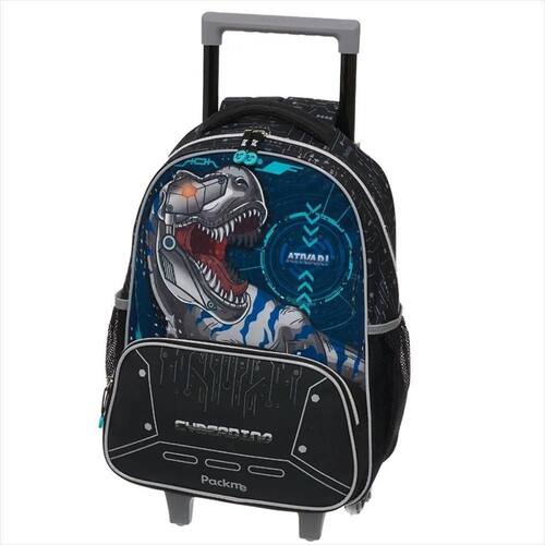 Mochila Pacific com Carrinho Pack Me Cyber Dino Trex Preto A Mochilete Escolar Pack Me Pacific transformará a ida a escola em uma caminhada divertida com a estampa super chamativa e estilosa do Cyberdino com destaque para luz vermelha brilhante ao apertar o olho do dinossauro. Esta mochila possui 2 bolsos laterais para garrafas e pequenos acessórios e 1 bolso frontal. São aproximadamente 24 litros de capacidade para organizar os seus itens do dia a dia escolar de forma prática, objetiva e organizada. Marca: Não Informado