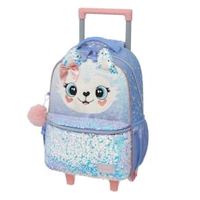 Mochila Pacific com Carrinho Pack Me Husky Lilás Transforme a rotina escolar com a Mochila de Rodinha Pack Me Husky Com paetês brilhantes, orelhinhas com lacinho e chaveiro de pompom, une charme e praticidade. A mochila tem rodinhas, alças ajustáveis e amplo espaço.