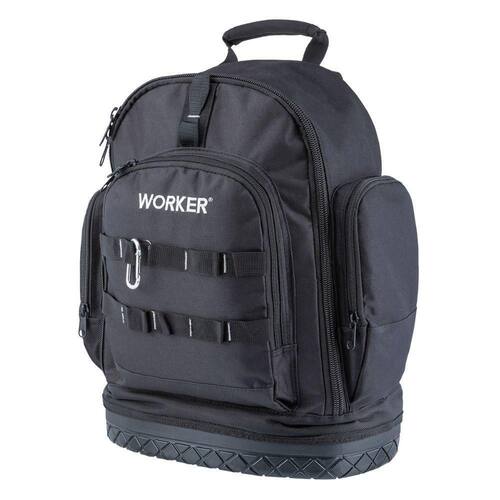 Especificações Material: Poliéster 600D Altura: 49 cm Comprimento: 59 cm Largura: 39 cm Peso: 8 cm Base: Emborrachada Itens Inclusos 1 Mochila para Ferramentas 14'' Poliéster Preta Worker Perguntas Frequentes (FAQ) Pergunta: Qual o material da mochila?