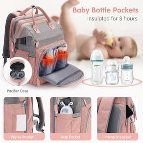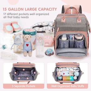 bolsa de fraldas de bebê, bolsa de fraldas com trocador - Mochila para bolsa de fraldas: o design completo inclui uma mochila de fraldas, um trocador lavável, uma capa de chupeta e alças embutidas para carrinho de bebê. O tecido externo resistente à água e o forro proporcionam uma organização limpa e sem bagunça para todas as necessidades - Grande capacidade: a dimensão da mochila da bolsa de fraldas é de 41 cm x 20 cm x 30 cm com 19 tipos diferentes de bolsos para armazenar itens da mãe e do bebê: lenços, garrafa de água, garrafa de leite, colher, chaves, celular, carteira, roupas, fraldas ou até mesmo calças sujas do bebê. O bolso frontal da mochila é equipado com folha de alumínio, que pode manter a mamadeira quente, para que você não precise se preocupar com o seu bebê recebendo leite em pó frio - Várias maneiras de transportar: esta bolsa de bebê pode ser usada como uma mochila de fraldas, um trocador ou pode ser conectada a um carrinho com uma fivela na alça de ombro. Muito adequada para viagens, passeios, compras ou como bolsa médica - Tecido impermeável e porta de carregamento USB/fone de ouvido: a mochila de viagem é feita de material impermeável, sua estrutura forte e durável. A mochila também tem porta de carregamento USB, você pode colocar seu carregador portátil no bolso interno do compartimento principal. Conecte o carregador portátil e o cabo USB através da porta externa para carregar. Mais conveniente para carregar seu telefone e fone de ouvido quando você estiver ao ar livre e viajando - Esta mochila para fraldas não é um dispositivo para dormir
