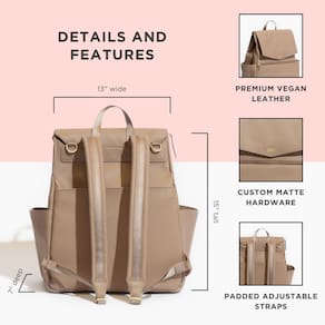 A bolsa de fraldas clássica Freshly Picked é um acessório elegante e funcional feito de couro vegano premium que é durável e fácil de limpar. O design clássico da mochila de fraldas apresenta um interior de nylon resistente a manchas, ferragens mate personalizadas e zíperes YKK, garantindo praticidade e sofisticação. Com amplos bolsos externos, incluindo um bolso frontal com zíper e um bolso deslizante para o seu telefone e bolsos laterais para garrafas que acomodam garrafas de até 946 ml, esta mochila para fraldas oferece armazenamento conveniente para todos os seus itens essenciais. Dentro, você encontrará um fecho de zíper superior com uma aba magnética de botão de pressão, laterais autoexpansíveis e vários bolsos internos, incluindo um bolso de parede com zíper, vários bolsos de malha e um bolso térmico para garrafa. Um tapete de troca lavável também está incluído para maior conveniência. As opções de uso versáteis incluem alças acolchoadas ajustáveis para uso confortável na mochila, uma alça de ombro ajustável para uso transversal ou bolsa e uma alça de transporte superior "pegue e vá". Além disso, quatro pés de metal mantêm a bolsa fora do chão. Com dimensões medindo 33 cm de largura x 38 cm de altura x 18 cm de profundidade e pesando 1 kg, esta bolsa de fraldas de designer oferece amplo espaço enquanto permanece leve e fácil de transportar. - Freshly Picked Bolsa de fraldas: Feita de couro vegano premium que também pode ser limpado, o Classic possui um interior de nylon resistente a manchas, ferragens foscas personalizadas e zíperes YKK. Uma mochila de fraldas resistente e elegante que você vai adorar usar e orgulhosamente passar. - Bolsos externos: a mochila grande para fraldas tem amplo espaço e bolsos para tudo o que você e seu bebê podem precisar. O bolso frontal com zíper inclui um bolso para celular. Os bolsos laterais para garrafas podem acomodar uma variedade de formatos de garrafas de até 946 ml. - Bolsos internos e armazenamento: fecho de zíper superior com aba magnética de botão de pressão. Laterais autoexpansíveis. Os destaques internos são um bolso de parede com zíper, vários bolsos de malha e bolso térmico para garrafa. Tapete de troca lavável também incluído. - Use de 3 maneiras: a mochila de fraldas possui alças acolchoadas ajustáveis para uso confortável. Alça de ombro ajustável incluída para uso como bolsa transversal ou bolsa. Também tem uma alça de transporte superior para pegar e levar e quatro pés de metal para manter a bolsa fora do chão. - Dimensões: a mochila mede 33 cm de largura x 38 cm de altura x 18 cm de profundidade e pesa 1 kg. As alças da mochila medem 61 cm e a alça de ombro incluída tem 119 cm no comprimento mais longo.