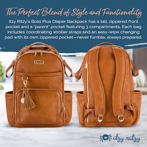 Itzy Ritzy Mochila para fraldas – Mochila Boss Plus de grande capacidade para bebês com 19 bolsos, trocador de fraldas, clipes para carrinho de bebê e alças confortáveis, conhaque - 19 bolsos multifuncionais: a mochila de fraldas Itzy Ritzy's Boss Plus possui incríveis 19 bolsos multifuncionais. De 13 bolsos internos a 6 externos, incluindo 2 bolsos isolados para garrafas, esta bolsa tem o que você precisa. Medindo 36 cm C x 25 cm L x 45 cm A, esta espaçosa bolsa de fraldas oferece amplo espaço para todos os itens essenciais do seu bebê. - Acesso rápido na ponta dos dedos: nossa mochila de fraldas Boss Plus vai além para os pais. Com um bolso externo frontal alto com zíper e um bolso frontal "mãe" de fácil acesso equipado com 3 bolsos e um cordão para chaves, você nunca se atrapalhará com o que precisa. - Alças para carrinho de bebê e almofada de troca fácil de limpar: projetada para pais modernos, cada mochila de fraldas para bebês Boss Plus vem com alças de carrinho de bebê coordenadas e uma almofada de troca fácil de limpar que tem seu próprio bolso com zíper. Além disso, o trocador apresenta adoráveis impressões de "cabeça e pés", facilitando a troca de fraldas, a qualquer hora, em qualquer lugar. - Pés de borracha com novo design trançado: a bolsa de fraldas Boss Plus apresenta nossos pés de borracha exclusivos com um novo design trançado na parte inferior da mochila. Nossos pés de borracha exclusivos oferecem estabilidade suficiente para manter a bolsa na vertical e a parte inferior limpa, não importa o quanto você a encha. - Elegantemente moderna, clássica chique: eleve seu estilo com nosso design Cognac Boss Plus. Esta requintada mochila de fraldas apresenta um interior estampado pelo sol e uma borla removível de couro vegano adornada com um pingente de corrente gravado, adicionando um toque de sofisticação ao seu conjunto. Nossas bolsas de fraldas Boss Plus são tão elegantes que também podem ser usadas como bolsas de trabalho, bolsas de ginástica ou bagagem de mão durante a viagem, prolongando sua utilidade por muito tempo depois que seu bebê crescer as fraldas.