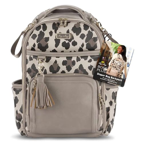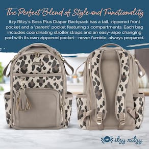 Itzy Ritzy Mochila para fraldas – Mochila para bebês Boss Plus de grande capacidade com 19 bolsos, trocador de fraldas, clipes para carrinho de bebê e alças confortáveis, leopardo - 19 bolsos multifuncionais: a mochila de fraldas Itzy Ritzy's Boss Plus possui incríveis 19 bolsos multifuncionais. De 13 bolsos internos a 6 externos, incluindo 2 bolsos isolados para garrafas, esta bolsa tem o que você precisa. Medindo 36 cm C x 25 cm L x 45 cm A, esta espaçosa bolsa de fraldas oferece amplo espaço para todos os itens essenciais do seu bebê. - Acesso rápido na ponta dos dedos: nossa mochila de fraldas Boss Plus vai além para os pais. Com um bolso externo frontal alto com zíper e um bolso frontal "mãe" de fácil acesso equipado com 3 bolsos e um cordão para chaves, você nunca se atrapalhará com o que precisa. - Alças para carrinho de bebê e almofada de troca fácil de limpar: projetada para pais modernos, cada mochila de fraldas para bebês Boss Plus vem com alças de carrinho de bebê coordenadas e uma almofada de troca fácil de limpar que tem seu próprio bolso com zíper. Além disso, o trocador apresenta adoráveis impressões de "cabeça e pés", facilitando a troca de fraldas, a qualquer hora, em qualquer lugar. - Pés de borracha com novo design trançado: a bolsa de fraldas Boss Plus apresenta nossos pés de borracha exclusivos com um novo design trançado na parte inferior da mochila. Nossos pés de borracha exclusivos oferecem estabilidade suficiente para manter a bolsa na vertical e a parte inferior limpa, não importa o quanto você a encha. - Elegantemente moderna, clássica chique: eleve seu estilo com nosso design Leopard Boss Plus. Esta requintada mochila de fraldas apresenta um interior impresso com logotipo e uma borla removível de couro vegano adornada com um pingente de corrente gravado, adicionando um toque de sofisticação ao seu conjunto. Nossas bolsas de fraldas Boss Plus são tão elegantes que também podem ser usadas como bolsas de trabalho, bolsas de ginástica ou bagagem de mão durante a viagem, prolongando sua utilidade por muito tempo depois que seu bebê crescer as fraldas.