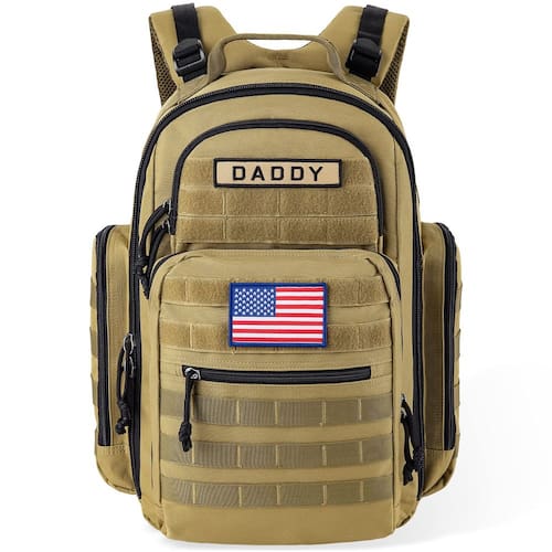 SHARKMOUTH Mochila para fraldas, bolsa de fraldas para homens e mulheres, mochila militar Molle para papai com suportes de garrafa isolados e bolso para lenços, grande capacidade para equipamentos com emblema de bandeira - Design de vários compartimentos: Tamanho: 46 x 40 x 26 cm, peso 1,2 kg. Com 5 bolsos com zíper e 12 bolsos dedicados, uma bolsa militar para fraldas é fácil de armazenar por categoria, você pode descobrir o que precisa mais rapidamente. Esta é uma mochila versátil - Ótimo armazenamento: grande o suficiente para caber em todas as fraldas para um dia fora. Fraldas, garrafas de água quente e fria e leite em pó, se você quiser, roupas de fraldas. Bolsa para chupeta, muitos bolsos organizados para lenços, lenços etc. Confortável de carregar e fica em pé sozinha quando colocada no chão. - Suportes de garrafa isolados incluídos: um grande compartimento isolado na parte de trás para guardar roupas molhadas de fraldas ou bexiga de água. Dois bolsos laterais isolados para garrafas de água quente e fria. Duas bolsas internas. A bolsa de fraldas SHARKMOUTH é perfeita para equipamentos. - Ajustável e confortável: as alças ajustáveis no ombro, peito e cintura podem ser modificadas para se ajustar ao seu tronco, ajudam a manter o equilíbrio e reduzir a carga. Esta bolsa é adequada para homens e mulheres. O acolchoamento de ar e a malha respirável garantem respirabilidade e conforto durante todo o dia. - Uso durável e multiuso: feito de tecido Oxford 600D de alta densidade - durável e impermeável. Não é apenas para uma bolsa de fraldas, também pode ser usada para caminhadas, acampamento, viagens, trilhas, caminhadas ou uso diário. É um ótimo presente para amigos e familiares que têm uma nova mochila de fraldas ou praticam esportes ao ar livre.