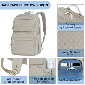 ?Bolsos multifuncionais e grande capacidade?: A mochila para laptop EMPSIGN tem muitos bolsos que podem armazenar diferentes tipos de itens. A mochila possui vários compartimentos e 15 bolsos pequenos multifuncionais para manter os itens organizados. Os bolsos acolchoados de laptops de 15,6 polegadas e bolsos para iPad oferecem seções grossas e acolchoadas. O design acolchoado pode proteger seu laptop de impactos acidentais e arranhões. A grande capacidade da mochila pode atender às suas necessidades em qualquer cenário de uso. - ?Bolsos multifuncionais e grande capacidade?: A mochila para laptop EMPSIGN tem muitos bolsos que podem armazenar diferentes tipos de itens. A mochila possui vários compartimentos e 15 bolsos pequenos multifuncionais para manter os itens organizados. Os bolsos acolchoados de laptops de 15,6 polegadas e bolsos para iPad oferecem seções grossas e acolchoadas. O design acolchoado pode proteger seu laptop de impactos acidentais e arranhões. A grande capacidade da mochila pode atender às suas necessidades em qualquer cenário de uso. - Mochila feminina durável e elegante: a mochila de trabalho para laptop Empsign é feita de lona acolchoada de alta qualidade e couro durável, com vantagens à prova d'água e resistente ao desgaste. O exterior da mochila adota tecnologia de acolchoamento, trava de metal de alta qualidade e design de interface USB, transmitindo uma aparência e sensação clássicas e modernas. A parte inferior estável da mochila pode transportar melhor a mochila. - ?Mochila de viagem de tamanho ideal?: a mochila EMPSIGN tem 39,5 cm de comprimento, 16,5 cm de largura e 30 cm de altura, projetada para ser espaçosa e leve, proporcionando uma experiência de transporte mais confortável. Enquanto isso, é muito leve, pesa menos de 1 kg e não parece volumosa. Adequada para laptops de 15,6 polegadas. - ?Adequada para todas as ocasiões?: As mochilas de negócios para laptop vêm com alças de ombro respiráveis ajustáveis e alças fixas para bagagem, facilitando a segurança e o uso da mochila. Tem uma ampla ampla variedade de cenários de uso e é muito adequada para trabalho, escritório, compras, viagens e atividades ao ar livre. - ?O presente ideal para férias?: a mochila tem um estilo moderno que a torna muito adequada para várias roupas e ocasiões. Para sua mãe, namorada, esposa, irmã, você ou outras mulheres, esta é a escolha perfeita para qualquer férias. Permite que você libere seu charme ao máximo.