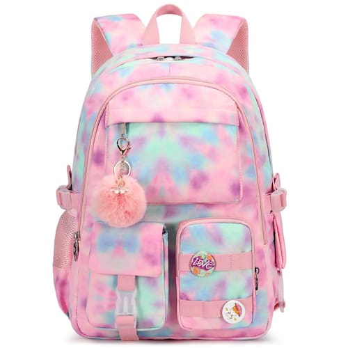 Esta mochila escolar para meninas é feita de tecido de nylon resistente à água de alta qualidade. Idade recomendada: 3-14 anos - ?Tamanho grande e presente?: As dimensões da mochila escolar primária são 35 cm x 19 cm x 45 cm (C x L x A), peso: 700 g. Vem com compartimento acolchoado adequado para tablets de 13,3,15,6 e 16 polegadas. Esta mochila também vem com pingente de chave de bola fofa e emblema de personalidade como enfeites de mochila tornam a mochila mais moderna e exclusiva - ?Material impermeável e zíper suave?: a mochila campus é feita de tecido de nylon à prova d'água, ultraleve de alta densidade e forro de poliéster com estampa fofa. O fecho de zíper de metal é utilizado pelos zíperes de qualidade premium para garantir o uso duradouro - ?Segurança e confortável?: o cinto atencioso em ambos os lados pode criar uma base sólida de suporte se você estiver embalando muitas coisas nas mochilas femininas. As alças largas e espessas em forma de S são bem acolchoadas, ajustáveis e confortáveis de carregar. O cinto de bagagem na parte de trás pode ser colocado na bagagem/mala para tornar sua viagem mais conveniente - ?Vários compartimentos e grande capacidade?: a mochila de viagem leve para mulheres tem 5 bolsos separados de tamanhos diferentes e dois bolsos laterais que atendem ao seu armazenamento diário. Os três bolsos frontais podem guardar dispositivos de carregamento e outros itens pequenos, convenientes para sua organização diária. O bolso principal inclui capa acolchoada para laptop com cinto elástico e bolsos internos ocultos com zíper. Os bolsos frontais para ferramentas também vêm com vários compartimentos para fornecer espaço espaçoso para as necessidades - ?Para todas as idades e ocasiões? A bolsa grande para livros é elegante o suficiente para uso casual e estudantil, enquanto o design oferece multifuncionalidade. A bolsa de mochila é perfeita para jovens adolescentes, meninas e mulheres. A mochila básica multiuso para a maioria das suas necessidades, fácil de combinar com suas roupas, adequada para viagens curtas, trabalho, compras, universidade, escola, etc.