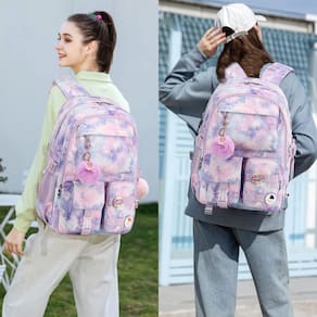 Esta mochila escolar para meninas é feita de tecido de nylon resistente à água de alta qualidade. Idade recomendada: 3-14 anos - ?Tamanho grande e presente?: As dimensões da mochila escolar primária são 35 cm x 19 cm x 45 cm (C x L x A), peso: 700 g. Vem com compartimento acolchoado adequado para tablets de 13,3,15,6 e 16 polegadas. Esta mochila também vem com pingente de chave de bola fofa e emblema de personalidade como enfeites de mochila tornam a mochila mais moderna e exclusiva - ?Material impermeável e zíper suave?: a mochila campus é feita de tecido de nylon à prova d'água, ultraleve de alta densidade e forro de poliéster com estampa fofa. O fecho de zíper de metal é utilizado pelos zíperes de qualidade premium para garantir o uso duradouro - ?Segurança e confortável?: o cinto atencioso em ambos os lados pode criar uma base sólida de suporte se você estiver embalando muitas coisas nas mochilas femininas. As alças largas e espessas em forma de S são bem acolchoadas, ajustáveis e confortáveis de carregar. O cinto de bagagem na parte de trás pode ser colocado na bagagem/mala para tornar sua viagem mais conveniente - ?Vários compartimentos e grande capacidade?: a mochila de viagem leve para mulheres tem 5 bolsos separados de tamanhos diferentes e dois bolsos laterais que atendem ao seu armazenamento diário. Os três bolsos frontais podem guardar dispositivos de carregamento e outros itens pequenos, convenientes para sua organização diária. O bolso principal inclui capa acolchoada para laptop com cinto elástico e bolsos internos ocultos com zíper. Os bolsos frontais para ferramentas também vêm com vários compartimentos para fornecer espaço espaçoso para as necessidades - ?Para todas as idades e ocasiões? A bolsa grande para livros é elegante o suficiente para uso casual e estudantil, enquanto o design oferece multifuncionalidade. A bolsa de mochila é perfeita para jovens adolescentes, meninas e mulheres. A mochila básica multiuso para a maioria das suas necessidades, fácil de combinar com suas roupas, adequada para viagens curtas, trabalho, compras, universidade, escola, etc.