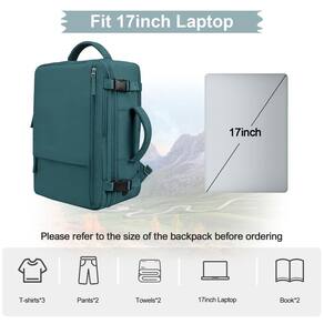 Hanples Mochila de viagem, uma mochila de marca de alta qualidade, foca no design e desenvolvimento de pessoas para viajar. Temos a missão de dar prioridade à experiência do usuário das pessoas, explorando e buscando um estilo de vida moderno, de alta eficiência e único. À prova de A mochila para laptop tem boas almofadas grossas no compartimento do laptop e no compartimento principal para proteger o laptop e outros itens dentro da mochila. É adequada para laptop de 15,6 polegadas. Maior capacidade A capacidade desta mochila é de 35 litros. Você pode levá-la para viagens de 3 a 5 dias. À prova d'água. A mochila geral para viagens é feita de tecido à prova d'água para evitar que você se molhe em dias chuvosos, e também há um compartimento de separação seco e molhado dentro, o que é conveniente para você guardar roupas de reposição molhadas. Alça grossa e larga As alças de ombro da mochila de viagem podem ser escondidas e as alças superiores e laterais grossas e largas podem ser usadas como bolsa de mão e também há uma alça de bagagem para ajudá-lo a fixá-la na mala. Esponja respirável A parte de trás da mochila casual é feita de esponja elástica e respirável. É respirável e pode tirar o calor sem superaquecer suas costas. Este item não se destina a ser utilizado por crianças menores de 12 anos. - [Capacidade expansível e adequada para laptop de 17,3 polegadas]: esta mochila para laptop tem um compartimento para laptop com boa almofada grossa, que pode proteger bem o seu laptop e também é adequada para laptops de 17,3 polegadas. Esta mochila de viagem tem muito espaço e bolsos para o que você precisa, e a capacidade é de 35 L. Uma boa companhia para viagens de 3 a 5 dias. (Peso líquido da mochila: 0,9 kg) - [Como item pessoal aprovado pela companhia aérea]: projetada exclusivamente para viagens de avião, esta mochila de mão pode ser aberta de 90 a 180 graus facilmente e rapidamente na segurança do aeroporto. Projetada para caber no tamanho máximo permitido em um voo, está disponível para manter sob o assento em voo como item pessoal, para companhias aéreas como Spirit, Easy Jet, Jet Blue - [Porta aberta multifuncional para carregar e ouvir]: a porta versátil do lado da mochila de viagem pode fornecer acesso conveniente para carregar seu telefone ou você pode usá-lo como uma porta de fone de ouvido para ouvir sua música premium. (Dicas: apenas uma porta aberta, cabo de carregamento e carregador portátil não estão incluídos) - [Material impermeável e design antirroubo]: esta mochila de viagem feminina é feita de poliéster impermeável durável, boa permeabilidade ao ar e dissipação de calor. O bolso traseiro com zíper da mochila protege seus itens preciosos, como carteira, passaporte e cartão de identificação de possíveis roubos ao viajar ou fazer fila. (Dica de limpeza: esfregue com um pano, se necessário) - [Durável e multiuso]: todos os zíperes desta mochila de mão são duráveis, suaves e resistentes à prova de explosão. As alças de ombro podem ser escondidas, para que você possa carregá-la como uma pasta usando a alça lateral. Há também uma alça de bagagem para ajudar você a fixá-la na mala