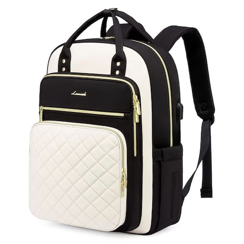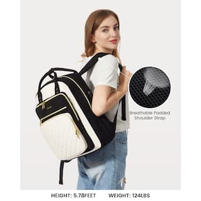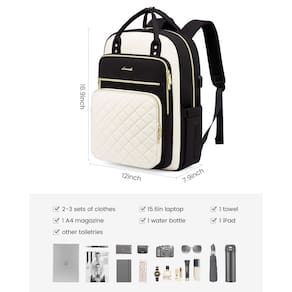 LOVEVOOK Mochila para laptop feminina, bolsa de viagem para trabalho, enfermeira, professora, bolsa de computador, mochila escolar universitária, D-preto-bege, Mochilas Daypack - O tecido Oxford de alta resistência, resistente a rasgos e à prova d'água, é macio, leve e resistente para uso confortável. O processo de produção é executado com precisão e atenção a cada detalhe. Se você não estiver satisfeito ou encontrar algum problema de qualidade, sinta-se à vontade para entrar em contato conosco, LOVEVOOK mochila fornecerá atendimento ao cliente 12 horas - Com um peso total de 800 g, uma capacidade é de cerca de 26 L e dimensões de 43 x 30 x 20 cm (A x C x L), esta mochila pode armazenar laptops de 15,6 polegadas ou menos. Acomoda facilmente suas necessidades diárias ou itens necessários para uma viagem de três dias - Esta mochila possui alças de ombro ergonômicas de malha respirável e uma grande alça superior de agarrar rapidamente. Com 18 bolsos, vários compartimentos e várias divisões de bolso, você pode manter seus itens organizados e encontrar facilmente o que precisa. É ideal como mochila de trabalho, faculdade ou viagem - Design de proteção para laptop: o compartimento para laptop possui acolchoamento de espuma EVA espessa, que oferece excelente amortecimento e proteção para o seu laptop. Também inclui uma alça resistente a choques para proteger o laptop, evitando que ele deslize e bata - O bolso de segurança na parte de trás fica próximo ao corpo do usuário, protegendo itens importantes como carteiras e passaportes. A alça de bagagem na parte de trás da mochila permite que você a deslize e fixe na alça da bagagem, reduzindo a pressão nas costas - A interface USB com design de cabo integrado é incrivelmente conveniente para carregar seus dispositivos eletrônicos conectando seu próprio carregador portátil (não incluído). Este recurso libera suas mãos em movimento