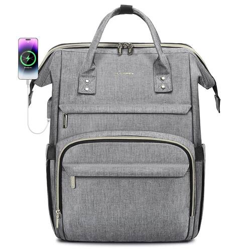 Mochila de laptop para mulheres Moda Viagem Bolsa de trabalho para computador de negócios Bolsa de trabalho com entrada USB., Cinza - Nylon, serve para laptop de até 15,6 polegadas. - Vários bolsos, com entrada USB, bolso especial na parte de trás seguro para celular, com puxador. - Puxador acolchoado confortável, respirável e ajustável, design para fluxo de ar nas costas com enchimento grosso e macio. - Com um bolso antirroubo na parte de trás, proteja seus valiosos itens de ladrões, perto da entrada USB, você pode colocar o seu celular quando estiver carregando. - Dimensões: 40,6 cm C, 30,4 cm A 14 cm D, Peso: 907 g.