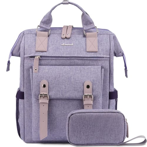 LOVEVOOK Bolsa para laptop feminina, bolsa de viagem para professores, enfermeiras, trabalho, viagem, negócios, viagem, mochila universitária, mochila para laptop, mochila elegante, 15,6 polegadas, roxa - Durável e confortável: a parte inferior da mochila para laptop é acolchoada e o interior onde o laptop e o tablet ficam também com enchimento. Bom acolchoamento para proteger o laptop, mas não muito volumoso. A ampla almofada de espuma e as alças acolchoadas ajustáveis o tornam confortável de carregar. - Muitos bolsos e armazenamento: a mochila para laptop feminina tem muitos bolsos para diferentes tipos de itens. A bolsa universitária pode guardar muitas coisas e ainda mantê-la organizada. A bolsa pequena adicional tem um bom tamanho para colocar algumas coisas pequenas ou até mesmo um carregador de laptop. A bolsa adicional pode ser usada como organizador de eletrônicos, bolsa, organizador de viagem ou organizador de cosméticos. - A mochila universitária em si tem um bolso frontal com fechos de botão e dois bolsos laterais. Os bolsos laterais são elásticos para que você possa caber em garrafas de água mais grossas. - Esta mochila feminina para laptop tem um fecho de zíper duplo e as alças também têm um botão de pressão para maior segurança. A ampla abertura tem na parte superior. A parte superior abre e permanece aberta. O zíper desliza suavemente. Com um bolso oculto antirroubo na parte de trás protege seus itens valiosos de ladrões. - Dimensão e material de alta qualidade: Mochila de trabalho para mulheres Tamanho: 29 cm C x 14 cm L x 40 cm A. Tamanho da capa organizadora eletrônica: 19 cm C x 5 cm L x 10 cm A. Material: poliéster. Vem com um saco de poeira para armazenamento. O tecido é durável e os fechos magnéticos são muito fortes. - Bolsa de mochila para mulheres: coloque seu carregador portátil dentro da mochila, ela tem uma porta USB interna para facilitar o carregamento do seu celular ou qualquer outro dispositivo portátil operado por bateria enquanto estiver em movimento. - Mochila de computador perfeita para todas as ocasiões. Esta mochila com compartimento para laptop é ótima para trabalho, viagens, viagens, enfermagem, hospital, casual. Presentes práticos para todas as pessoas de quem você gosta. É a melhor escolha como presente para homens e mulheres no Dia dos Pais, Dia das Mães, Natal e qualquer outro festival.