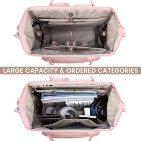 LOVEVOOK Mochila para laptop feminina, mochila de trabalho, bolsa de professor - ?Mochila de trabalho de grande capacidade?A mochila feminina LOVEVOOK usa um design retangular de abertura da moldura para manter a grande capacidade e facilitar seu acesso rápido. - ?Mochila para laptop com vários compartimentos? A mochila para laptop tem um total de 5 compartimentos e 19 bolsos, convenientes para sua organização e armazenamento. - ?Dimensão? 17,5 x 29 x 14 cm. Contém um compartimento separado para computador que pode acomodar 17,3 polegadas e um compartimento para iPad que pode acomodar até 12,9 polegadas. - ?Bolso antifurto?A alça de bagagem permite que você fixe facilmente sua mochila no estojo do carrinho. O bolso antirroubo na parte traseira torna seus pertences mais seguros e sua viagem mais fácil. - ?Confortável e resistente?O cinto de ombro e a parte traseira são equipados com almofadas de espuma de alta qualidade, que são respiráveis e reduzem a pressão. A grande capacidade e os bolsos laterais elásticos podem armazenar cerca de copos de água de 1,2 litros.