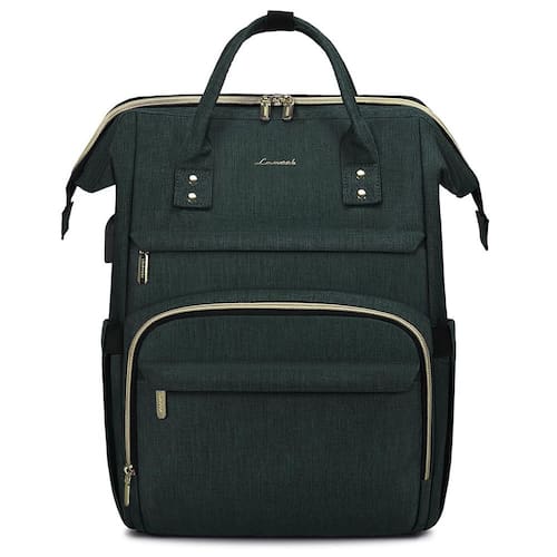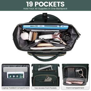 LOVEVOOK Mochila feminina para laptop, 43 cm, profissional, para viagem, para computador, laptop, enfermeira, professora, mochila, impermeável, bolsa de trabalho com porta USB, verde escuro, Verde - ?Qualidade atualizada e grande capacidade?: Zíperes de metal antiderrapantes duplos atualizados. Tecido de poliéster resistente à água e durável, costuras especialmente reforçadas. Alça e alças de ombro confortáveis e resistentes. Todos são resistentes e duráveis. Dimensões: 30 cm C x 43 cm A x 19 cm P, Peso: 1 kg. Total de 2 compartimentos e 19 bolsos para o seu computador, necessidades de trabalho, suprimentos universitários e itens essenciais de viagem. - Mochilas de trabalho para professores e enfermeiras abertas?: As bordas reforçadas e a estrutura de aço do compartimento principal mantêm a forma perfeita da bolsa, a parte superior abre, você pode ver suas coisas facilmente e acessar rapidamente, mais facilmente organizada. Mochila de professor com compartimento para laptop, bolsas de enfermeiras e bolsas para trabalho, mochila de trabalho para mulheres profissionais. - Mochila feminina acolchoada para laptop e bolsas de computador: o compartimento acolchoado embutido para laptop com algodão acolchoado é compatível com laptop de até 17 polegadas, esta bolsa feminina vem com uma alça elástica que oferece a proteção ideal para o seu laptop, compartimento para tablet compatível com laptop de 13,3 polegadas, iPad de 12,9 polegadas. Ótima ideia de mochila para qualquer pessoa com vários dispositivos eletrônicos. - ?Ótima mochila de viagem aprovada por companhias aéreas com porta USB?: Mochila para viajar de avião. Tamanho perfeito para caber sob o assento do avião. A alça de bagagem permite que a mochila se encaixe na bagagem/mala para facilitar o transporte. O bolso traseiro oculto protege seus itens valiosos de ladrões. Com cabo de carregamento interno e porta USB externa, a linda mochila oferece uma maneira mais conveniente de carregar seus dispositivos. - ??Presentes práticos e garantia de qualidade?: Esta bolsa de laptop feminina foi bem feita para o trabalho, negócios, viagens, deslocamento, faculdade, professor, enfermeira, uso diário. Presentes práticos para todas as pessoas de quem você gosta. A mochila feminina para laptop LOVEVOOK oferece atendimento ao cliente em 12 horas, devolução sem motivo em 30 dias e política de garantia de 1 ano.