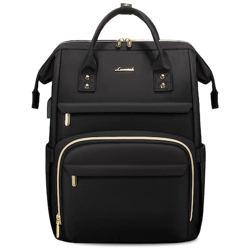 LOVEVOOK Mochila feminina para laptop moderna, bolsa de viagem, bolsa de trabalho para computador de negócios com porta USB, Preto, Moderno - ?Qualidade atualizada e grande capacidade?: Zíperes de metal antiderrapantes duplos atualizados. Tecido de poliéster resistente à água e durável, costuras especialmente reforçadas. Alça e alças de ombro confortáveis e resistentes. Todos são resistentes e duráveis. Dimensões: 33 cm C x 44 cm A x 20 cm P, Peso: 1 kg. Total de 2 compartimentos e 19 bolsos para o seu computador, necessidades de trabalho, suprimentos universitários e itens essenciais de viagem. - Mochilas de trabalho para professores e enfermeiras abertas?: As bordas reforçadas e a estrutura de aço do compartimento principal mantêm a forma perfeita da bolsa, a parte superior abre, você pode ver suas coisas facilmente e acessar rapidamente, mais facilmente organizada. Mochila de professor com compartimento para laptop, bolsas de enfermeiras e bolsas para trabalho, mochila de trabalho para mulheres profissionais. - Mochila feminina acolchoada para laptop e bolsas de computador: o compartimento acolchoado embutido para laptop com algodão acolchoado é compatível com laptop de até 18 polegadas, esta bolsa feminina vem com uma alça elástica que oferece a proteção ideal para o seu laptop, compartimento para tablet compatível com laptop de 13,3 polegadas, iPad de 12,9 polegadas. Ótima ideia de mochila para qualquer pessoa com vários dispositivos eletrônicos. - ?Ótima mochila de viagem aprovada por companhias aéreas com porta USB?: Mochila para viajar de avião. Tamanho perfeito para caber sob o assento do avião. A alça de bagagem permite que a mochila se encaixe na bagagem/mala para facilitar o transporte. O bolso traseiro oculto protege seus itens valiosos de ladrões. Com cabo de carregamento interno e porta USB externa, a linda mochila oferece uma maneira mais conveniente de carregar seus dispositivos. - ??Presentes práticos e garantia de qualidade?: Esta bolsa de laptop feminina foi bem feita para o trabalho, negócios, viagens, deslocamento, faculdade, professor, enfermeira, uso diário. Presentes práticos para todas as pessoas de quem você gosta. A mochila feminina para laptop LOVEVOOK oferece atendimento ao cliente em 12 horas, devolução sem motivo em 30 dias e política de garantia de 1 ano.