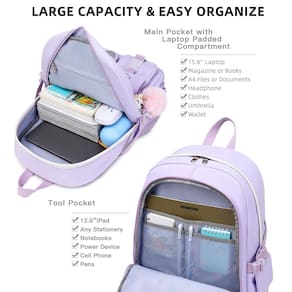 Mochilas para laptop, mochila escolar de 40,6 cm, mochila universitária, grande, mochila kawaii, para adolescentes, meninas, mulheres estudantes, Roxa, Moderno - ?Tamanho grande e presente?: o tamanho da mochila é de 31 x 15 x 45 cm (C x L x A), peso: 700 g. A bolsa para laptop com compartimento acolchoado serve para tablets de 13,3,15,6 e 16 polegadas. Esta bolsa também vem com pingente de chave de bola fofa e distintivo de personalidade como presente, torna as bolsas mais elegantes e exclusivas - ?Material impermeável e zíper suave?: a mochila campus é feita de tecido de nylon à prova d'água, ultraleve de alta densidade e forro de poliéster com estampa fofa. O fecho de zíper de metal é utilizado pelos zíperes de qualidade premium para garantir o uso duradouro - ?Segurança e confortável?: o cinto atencioso em ambos os lados pode criar uma base sólida de suporte se você estiver embalando muitas coisas nas mochilas. As alças largas e espessas em forma de S são bem acolchoadas, ajustáveis e confortáveis de carregar. O cinto de bagagem na parte de trás pode ser colocado na bagagem/mala para tornar sua viagem mais conveniente - ?Vários compartimentos e grande capacidade?: a mochila grande tem 7 bolsos separados de tamanhos diferentes e dois bolsos laterais para armazenamento diário. Os cinco bolsos frontais podem guardar dispositivos de carregamento e outros itens pequenos, convenientes para sua organização diária. O bolso principal inclui capa acolchoada para laptop com cinto elástico e bolsos internos ocultos com zíper. Os bolsos frontais para ferramentas também vêm com vários compartimentos para fornecer espaço espaçoso para as necessidades - ?Para todas as idades e ocasiões? A mochila à prova d'água é elegante o suficiente para uso casual e estudantil, enquanto o design oferece multifuncionalidade. Mochila perfeita para adolescentes, meninas, senhoras. A mochila básica multiuso para a maioria das suas necessidades, fácil de combinar com suas roupas, adequada para viagens curtas, trabalho, compras, universidade, escola, etc.