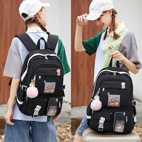 Idade recomendada: 3-14 anos - ?Tamanho grande e presente?: o tamanho da mochila é de 31 x 15 x 45 cm (C x L x A), peso: 700 g. A bolsa para laptop com compartimento acolchoado serve para tablets de 13,3,15,6 e 16 polegadas. Esta bolsa também vem com pingente de chave de bola fofa e distintivo de personalidade como presente, torna as bolsas mais elegantes e exclusivas - ?Material impermeável e zíper suave?: a mochila campus é feita de tecido de nylon à prova d'água, ultraleve de alta densidade e forro de poliéster com estampa fofa. O fecho de zíper de metal é utilizado pelos zíperes de qualidade premium para garantir o uso duradouro - ?Segurança e confortável?: o cinto atencioso em ambos os lados pode criar uma base sólida de suporte se você estiver embalando muitas coisas nas mochilas. As alças largas e espessas em forma de S são bem acolchoadas, ajustáveis e confortáveis de carregar. O cinto de bagagem na parte de trás pode ser colocado na bagagem/mala para tornar sua viagem mais conveniente - ?Vários compartimentos e grande capacidade?: a mochila grande tem 7 bolsos separados de tamanhos diferentes e dois bolsos laterais para armazenamento diário. Os cinco bolsos frontais podem guardar dispositivos de carregamento e outros itens pequenos, convenientes para sua organização diária. O bolso principal inclui capa acolchoada para laptop com cinto elástico e bolsos internos ocultos com zíper. Os bolsos frontais para ferramentas também vêm com vários compartimentos para fornecer espaço espaçoso para as necessidades - ?Para todas as idades e ocasiões? A mochila à prova d'água é elegante o suficiente para uso casual e estudantil, enquanto o design oferece multifuncionalidade. Mochila perfeita para adolescentes, meninas, senhoras. A mochila básica multiuso para a maioria das suas necessidades, fácil de combinar com suas roupas, adequada para viagens curtas, trabalho, compras, universidade, escola, etc.