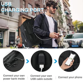 Material: poliéster resistente à água Cor: preto/azul Dimensão: 48 x 36 x 18 cm Tamanho do laptop: 39.6 cm, 40.6 cm, 43.2 cm, 43.9 cm Ocasiões: viagens de avião, caminhadas, acampamento, faculdade, casual, escritório, negócios, compras, viagem de lazer, atividades ao ar livre, etc. ?Por que escolher RAINSMORE mochila para laptop de viagem? Grande capacidade e compartimentos espaçosos: 1 compartimento principal espaçoso para suas roupas e outros itens essenciais do dia a dia 1 compartimento separado para laptop de 17,3 polegadas. 2 bolsos laterais de malha para guarda-chuva e garrafa de água. 1 bolso traseiro para guardar itens valiosos. 3 bolsos frontais para fácil acesso ao que você precisa. Conteúdo da embalagem: * 1 mochila para laptop - ?Grande capacidade e bolsos espaçosos?Esta mochila masculina para laptop tem muitos bolsos para uma boa organização. Um compartimento separado para laptop pode acomodar um laptop de até 17,3 polegadas. Um compartimento principal espaçoso para itens essenciais diários e acessórios eletrônicos tecnológicos. 1 compartimento organizado com bolsos ocultos e bolsos para canetas. 2 bolsos laterais de malha. 2 bolsos frontais com zíper. 1 bolso traseiro antirroubo. - ?Porta de carregamento USB e compatível com TSA?A porta USB externa com cabo de carregamento integrado oferece uma maneira conveniente de carregar seu celular enquanto caminha. Projetada exclusivamente para viagens de avião, a mochila de viagem pode ser aberta até 180 graus para digitalização facilmente, fazendo com que passe pelo ponto de controle de segurança do aeroporto mais rapidamente. - ?Confortável e prática?Mochila traseira durável com costas macias e acolchoadas, alças de ombro de malha respirável ajustáveis, que ajudam a aliviar o desconforto do seu ombro. Alça de ombro com design de cordão, pode pendurar óculos de sol e outros itens pequenos. 1 alça traseira para bagagem permite que esta mochila de computador deslize sobre o tubo da mala para facilitar o transporte. A faixa reflexiva frontal das mochilas para laptop torna seguro viajar à noite. - ?Material à prova d'água e durável?As mochilas masculinas de 43 cm são feitas de tecido de poliéster resistente à água e a arranhões, que protege seus itens internos de ficarem molhados em dias de garoa. Zíperes YKK duplos resistentes e alça superior durável para uso duradouro. - ?Mochila multiusos?Esta mochila elegante pode ser usada como mochila para laptop, mochila universitária, mochila de trabalho, mochila portátil de 17 polegadas, mochila diária, mochila de viagem, mochila de negócios, bolsa de computador, mochila de mão pessoal. Também é um excelente presente para seu pai, namorado, amigos, marido e filho na maioria dos festivais. - Este item não se destina a ser utilizado por crianças menores de 12 anos.