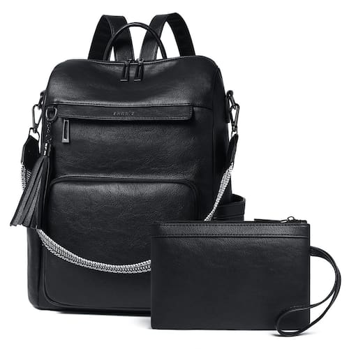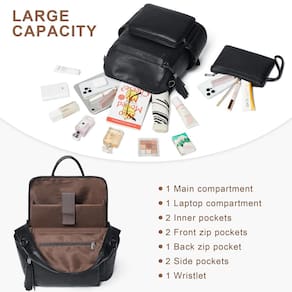 Mochila feminina de couro para laptop Shrrie Material externo: couro PU de alta qualidade Tamanho: (C) 15 x (L) 19 x (A) 38 cm Peso: 900 g. Estrutura: 11 bolsos Mochila feminina de couro para viagem com detalhe de bolsa de ombro Design de mochila aberta superior Costura reforçada. Parte traseira da bolsa com costura reforçada para sua durabilidade. Material de alta qualidade. Todos os acessórios são feitos de liga metálica, anticorrosão, modernos e duráveis. Formas de transporte conversíveis A alça longa removível permite que a bolsa seja usada como bolsa de ombro ou mochila. - ?Mochila de couro para laptop feminina?A mochila para laptop é feita de couro vegano impermeável de alta qualidade, resistente e durável. Total de 9 bolsos, fácil de organizar todas as necessidades de trabalho, suprimentos universitários e itens essenciais de viagem. - ?Mochila moderna acolchoada para computador?A mochila feminina tem um bolso para laptop de 15,6 polegadas. O compartimento dedicado para laptop com algodão acolchoado costurado ao redor maximiza a proteção física de seus dispositivos eletrônicos. - ?Grande capacidade?A mochila de trabalho de grande capacidade tem vários bolsos divisórios, fácil de guardar laptop, ipads, telefone, fichário, garrafa de água, guarda-chuva, revistas, canetas, carteira e assim por diante. Profissional e bem feita para trabalho, negócios, viagens, deslocamento, faculdade, professor, enfermeira, uso diário - ?Design prático de alça de bagagem?A mochila de couro feminina é projetada para viajar, ajuda você a liberar suas mãos e costas do fardo. Torne sua viagem mais conveniente e agradável. A mochila de viagem à prova d'água cabe sob o assento e também atende aos requisitos de bagagem de mão. - ?Presentes ideais?A mochila universitária Shrrie com compartimento para laptop é ótima para o trabalho, viagens, viagens, faculdade, hospital, viagem de negócios, escapada, etc. É uma boa escolha como presente para mulheres ou homens no Dia das Mães/Dia dos Pais, Dia de Ação de Graças, Dia de Natal, formatura, Dia dos Namorados, aniversário, Ano Novo e outros festivais.