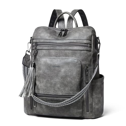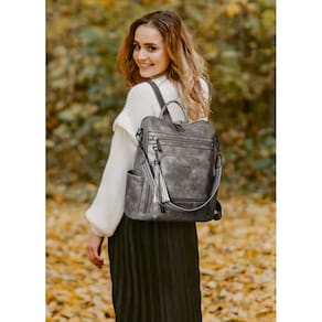 Mochila feminina de couro para laptop Shrrie Material externo: couro PU de alta qualidade Tamanho: (C) 15 x (L) 18 x (A) 40,6 cm Peso: 900 g. Estrutura: 11 bolsos Mochila feminina de couro para viagem com detalhe de bolsa de ombro Design de mochila aberta superior Costura reforçada. Parte traseira da bolsa com costura reforçada para sua durabilidade. Material de alta qualidade. Todos os acessórios são feitos de liga metálica, anticorrosão, modernos e duráveis. Formas de transporte conversíveis A alça longa removível permite que a bolsa seja usada como bolsa de ombro ou mochila. - ?Mochila de couro para laptop feminina?A mochila para laptop é feita de couro vegano impermeável de alta qualidade, resistente e durável. Total de 9 bolsos, fácil de organizar todas as necessidades de trabalho, suprimentos universitários e itens essenciais de viagem. - ?Mochila moderna acolchoada para computador?A mochila feminina tem um bolso para laptop de 15,6 polegadas. O compartimento dedicado para laptop com algodão acolchoado costurado ao redor maximiza a proteção física de seus dispositivos eletrônicos. - ?Grande capacidade?A mochila de trabalho de grande capacidade tem vários bolsos divisórios, fácil de guardar laptop, ipads, telefone, fichário, garrafa de água, guarda-chuva, revistas, canetas, carteira e assim por diante. Profissional e bem feita para trabalho, negócios, viagens, deslocamento, faculdade, professor, enfermeira, uso diário - ?Design prático de alça de bagagem?A mochila de couro feminina é projetada para viajar, ajuda você a liberar suas mãos e costas do fardo. Torne sua viagem mais conveniente e agradável. A mochila de viagem à prova d'água cabe sob o assento e também atende aos requisitos de bagagem de mão. - ?Presentes ideais?A mochila universitária Shrrie com compartimento para laptop é ótima para o trabalho, viagens, viagens, faculdade, hospital, viagem de negócios, escapada, etc. É uma boa escolha como presente para mulheres ou homens no Dia das Mães/Dia dos Pais, Dia de Ação de Graças, Dia de Natal, formatura, Dia dos Namorados, aniversário, Ano Novo e outros festivais.