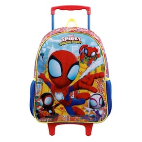 1 Bolso Principal e 2 Laterais para garrafinhas; Mochila de rodinhas e puxador resistente; Estampa Personalizada Spidey Amazing Friends; Ean: 7899768848763